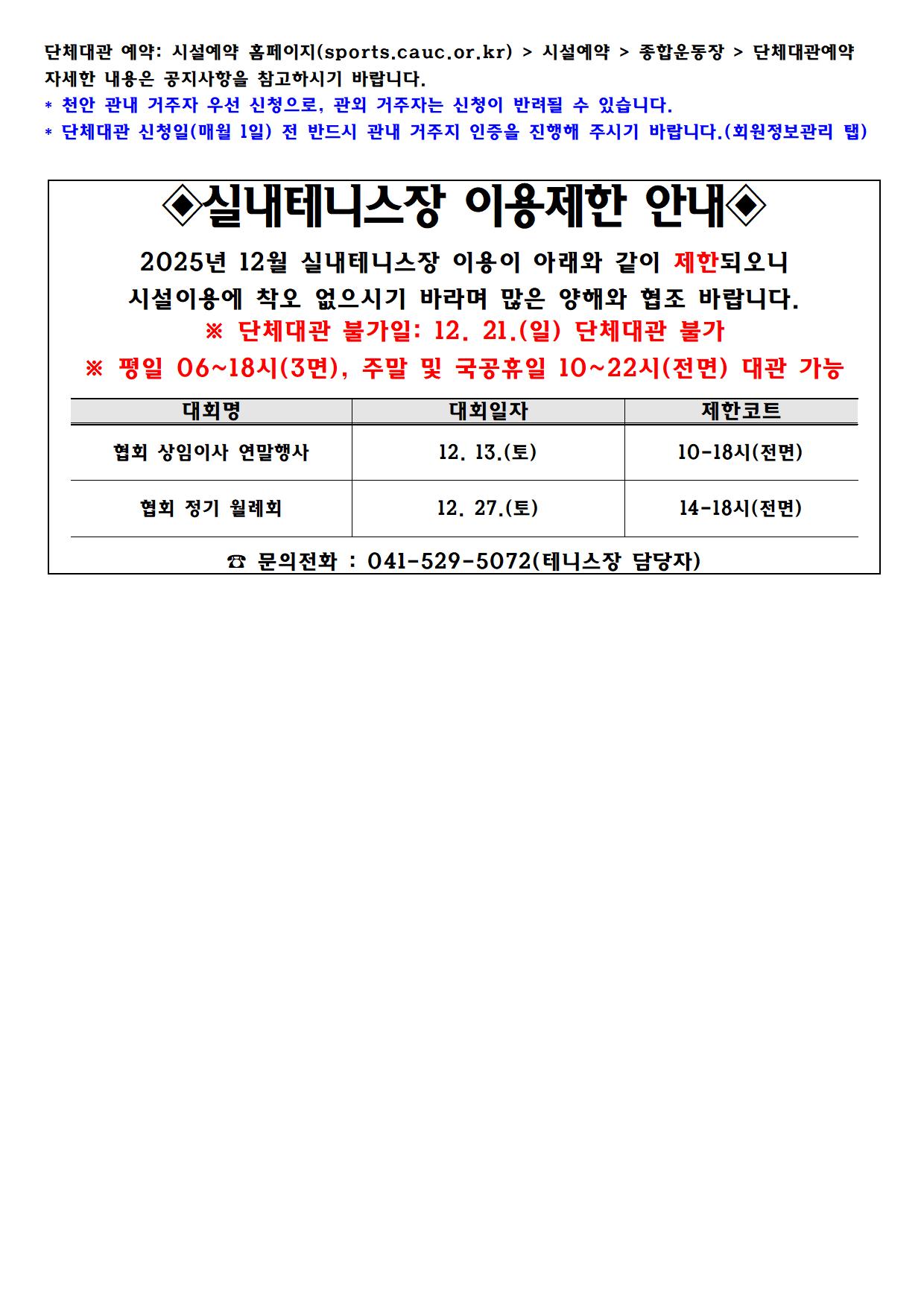 | 2025³â 12¿ù ½Ç³»¿ÜÅ״ϽºÀå ´Üü´ë°ü ¿¹¾à ¹× ÀÌ¿ëÁ¦ÇÑ ¾È³»(10. 24. ±âÁØ) | |
