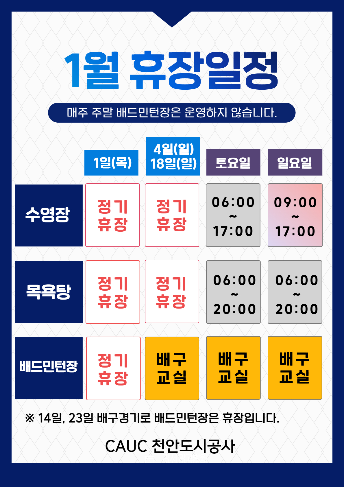 ±¹¹ÎüÀ°¼¾ÅÍ 2026³â 1¿ù ÈÞÀåÀÏ ¾È³»