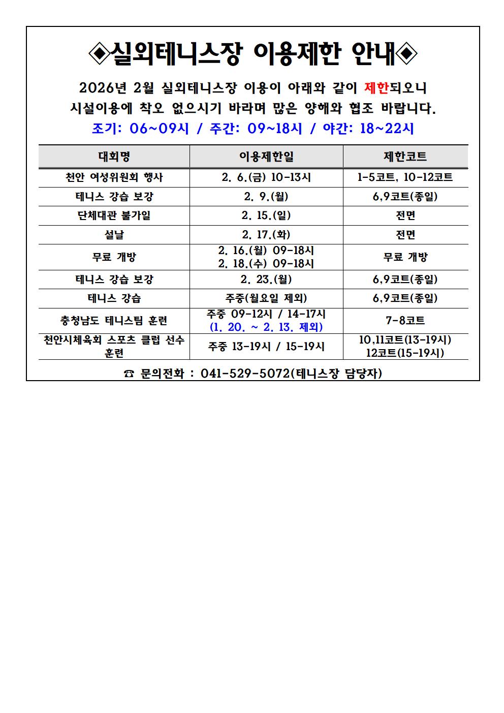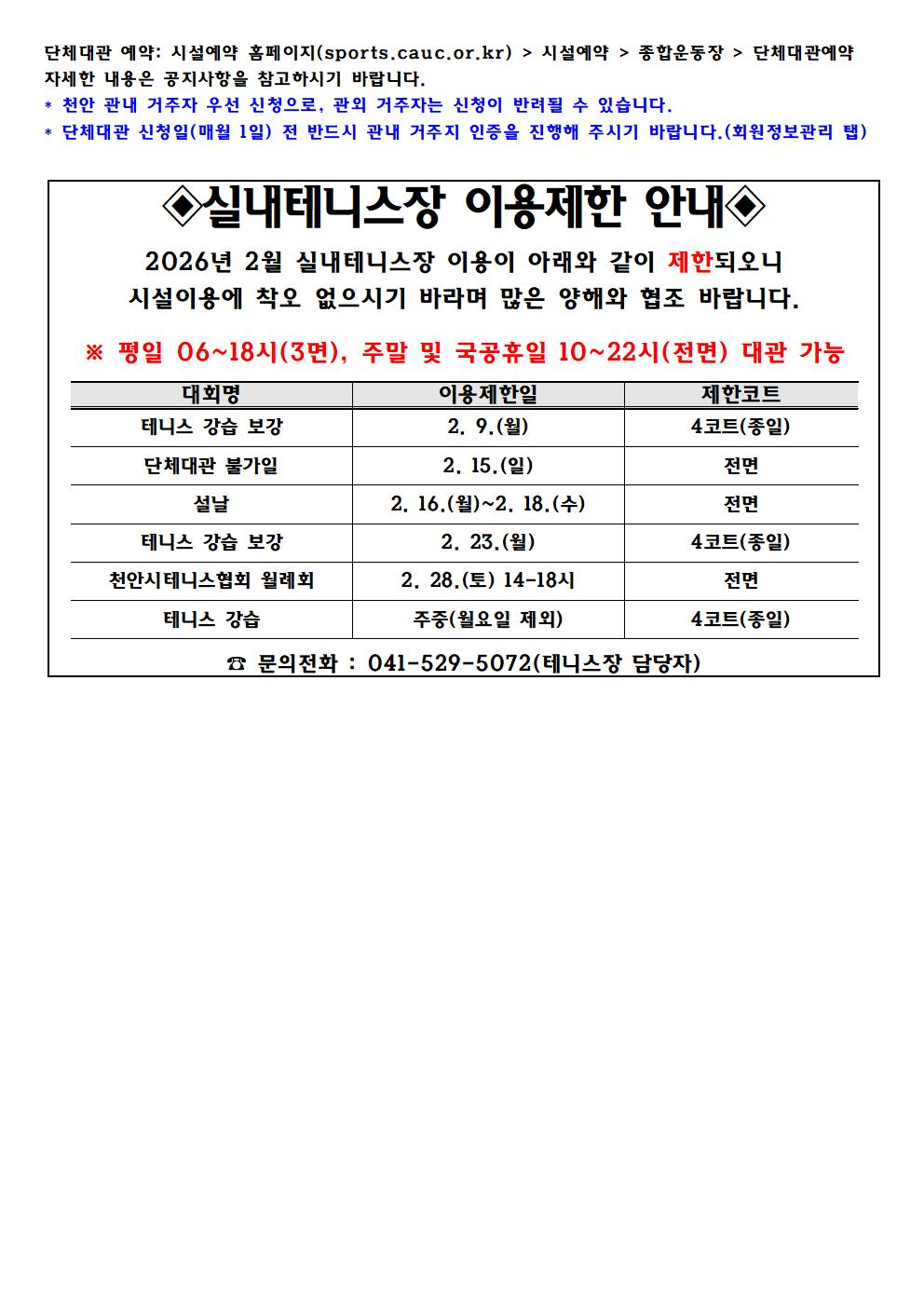 | 2026³â 2¿ù ½Ç³»¿ÜÅ״ϽºÀå ´Üü´ë°ü ¿¹¾à ¹× ÀÌ¿ëÁ¦ÇÑ ¾È³»(1. 9. ±âÁØ) | |