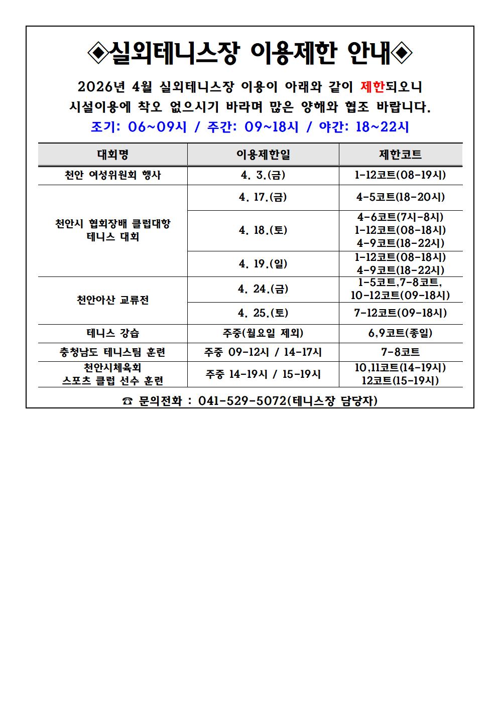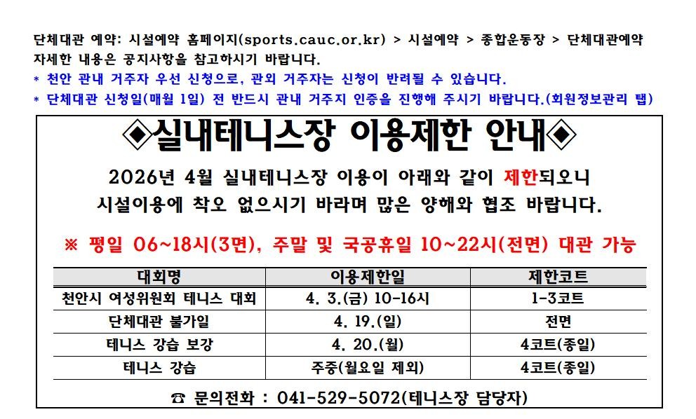 | 2026³â 4¿ù ½Ç³»¿ÜÅ״ϽºÀå ´Üü´ë°ü ¿¹¾à ¹× ÀÌ¿ëÁ¦ÇÑ ¾È³»(3. 31. ±âÁØ) | |