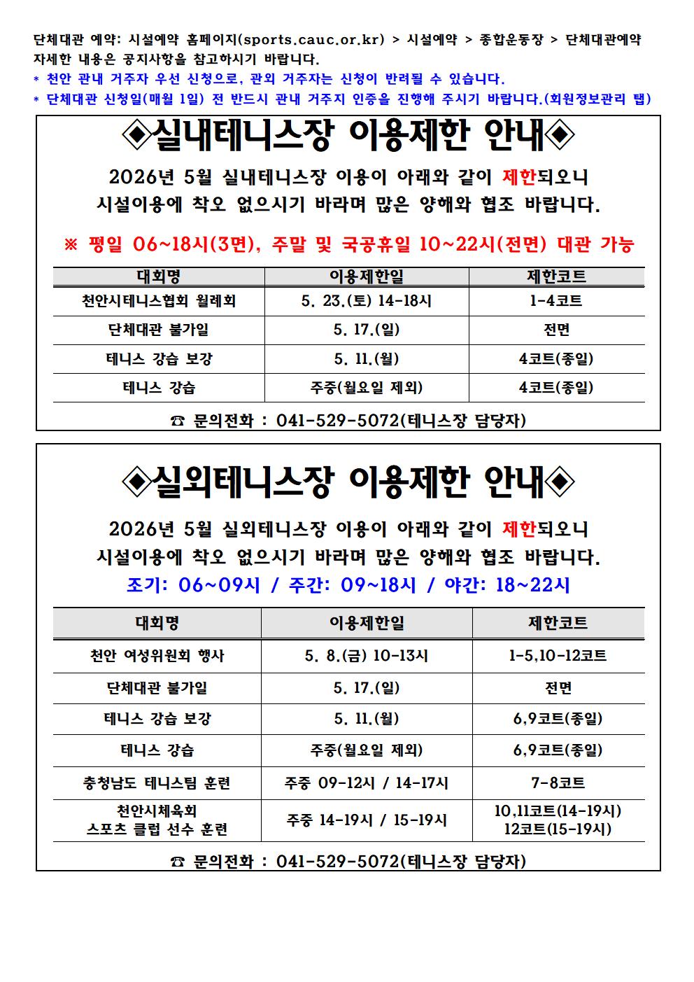 | 2026³â 5¿ù ½Ç³»¿ÜÅ״ϽºÀå ´Üü´ë°ü ¿¹¾à ¹× ÀÌ¿ëÁ¦ÇÑ ¾È³»(4. 15. ±âÁØ) | |