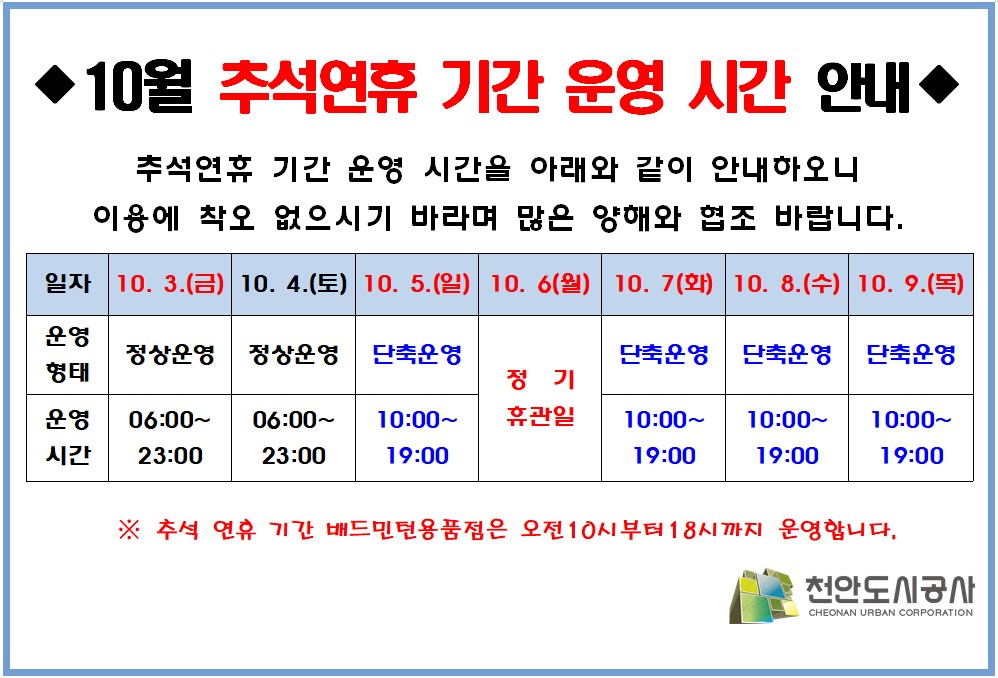 ½Ç³»¹èµå¹ÎÅÏÀå(û´çµ¿) Ãß¼®¿¬ÈÞ ±â°£ ¿î¿µ ½Ã°£ ¾È³»