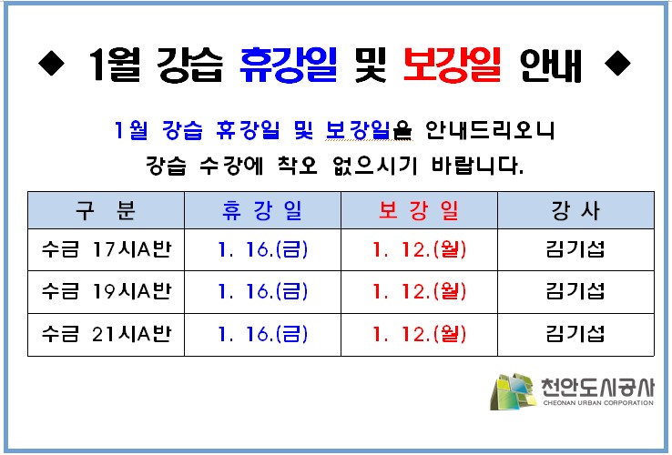 | 2026³â 1¿ù ½Ç³»¹èµå¹ÎÅÏÀå(û´çµ¿) °½À ÈÞ°ÀÏ ¹× º¸°ÀÏ ¾È³» | |