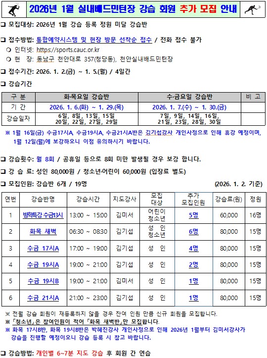 2026³â 1¿ù ½Ç³»¹èµå¹ÎÅÏÀå(û´çµ¿) °½À ¹× ¹æÇÐÆ¯° ȸ¿ø Ãß°¡ ¸ðÁý ¾È³»