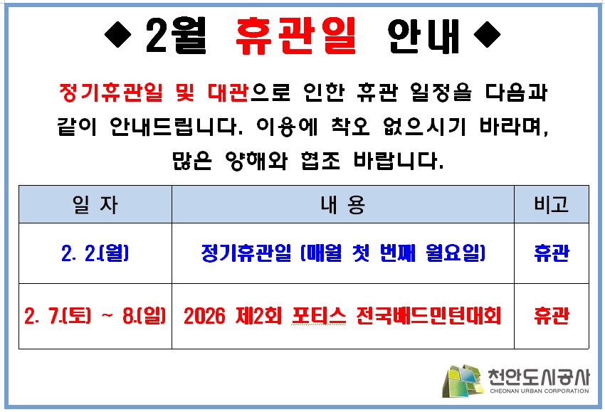 2026³â 2¿ù ½Ç³»¹èµå¹ÎÅÏÀå(û´çµ¿) ÈÞ°üÀÏ ¹× ´ë°üÀÏ ¾È³»
