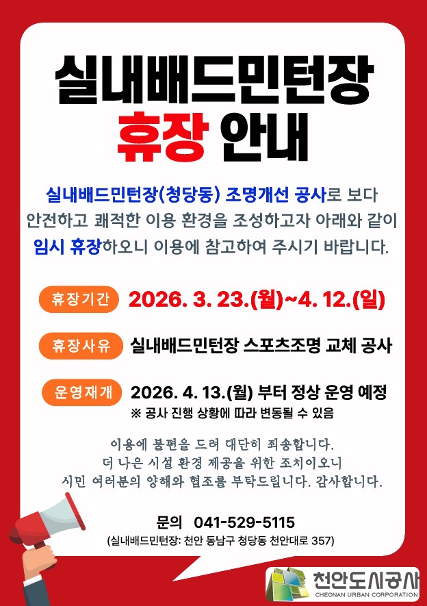 ½Ç³»¹èµå¹ÎÅÏÀå ÈÞÀå ¾È³»(2026. 3. 23. ~ 4. 12.)